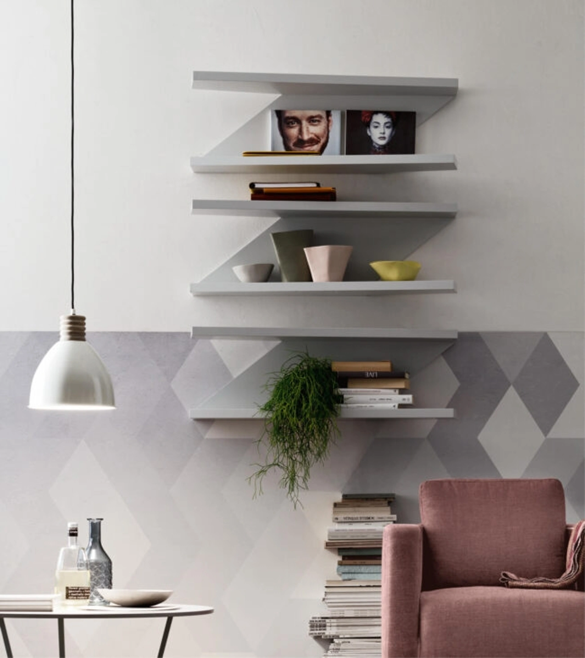 Desideri valorizzare i tuoi locali con i Complementi Maronese? Ecco qui vari modelli di mensole in melaminico come Zig-Zag.