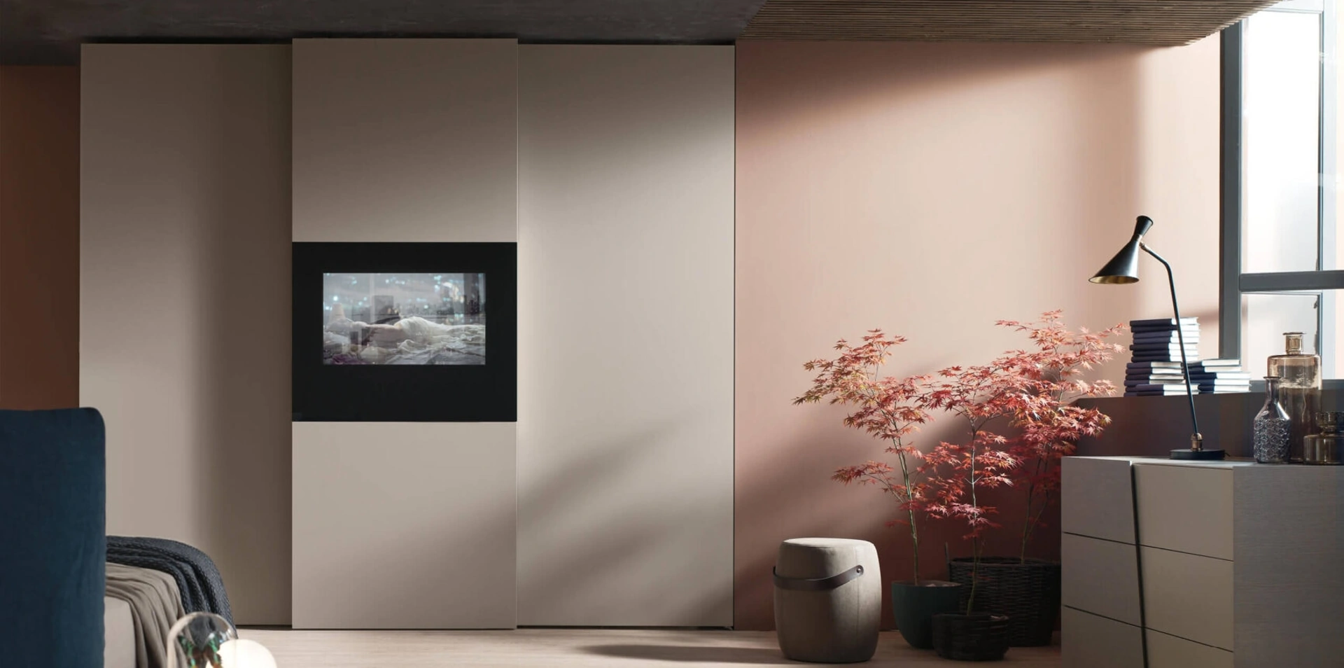 Se desideri armadiature a muro con ante scorrevoli, clicca e scopri l'armadio Wallblog3 di Maronese in melaminico.