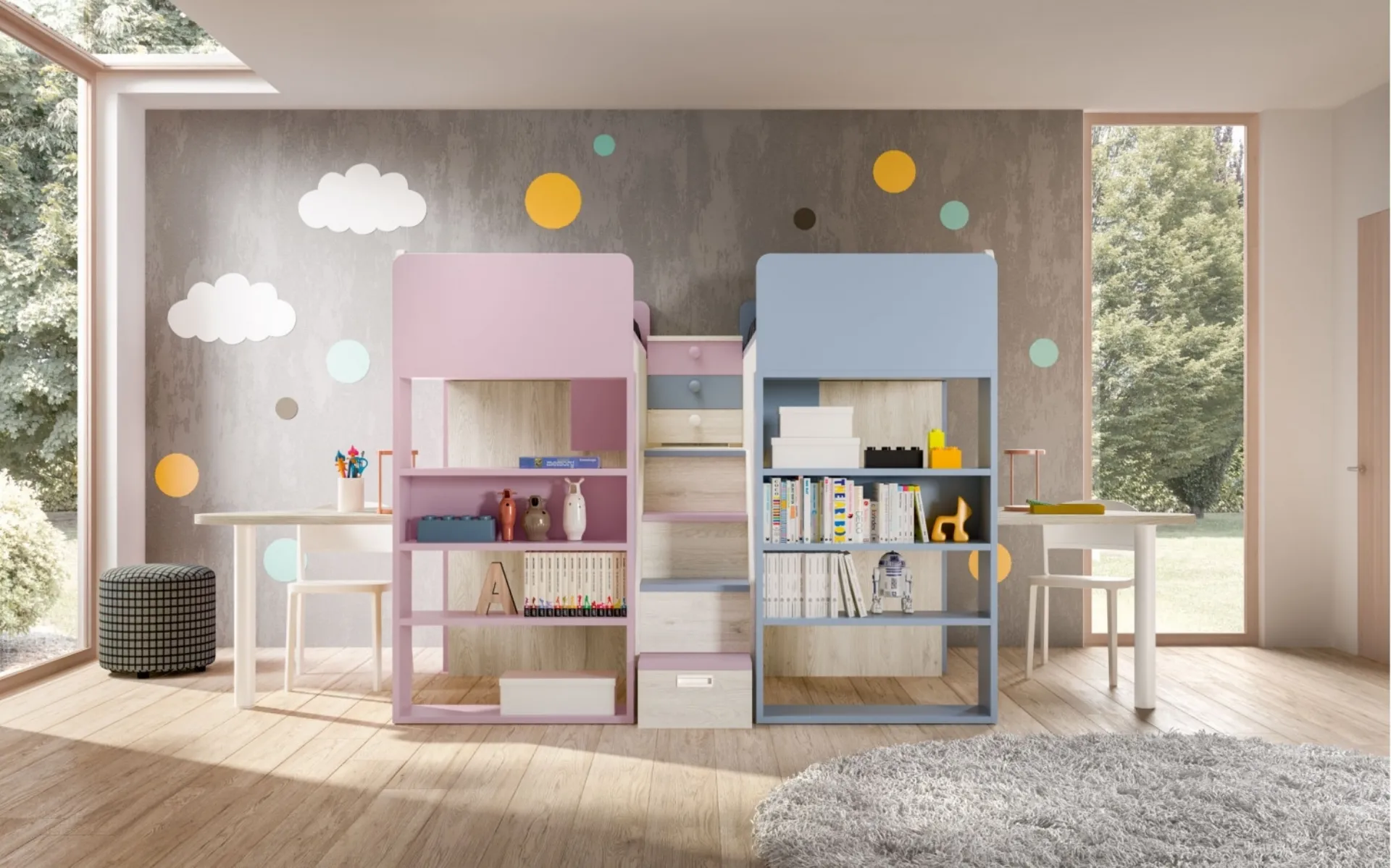 Questa soluzione con finitura in melaminico, tra quelle a soppalco per bambini di Zg Mobili, accontenta le esigenze degli adulti e i gusti dei bambini. Con la Camera con soppalco Room165 di Zg Mobili renderai la stanza dei tuoi figli un locale davvero funzionale e sicuro, che li accompagnerà mentre diventano grandi. Il rinomato marchio propone diverse soluzioni moderne, così la cameretta sarà un locale dove i piccoli avranno la possibilità di diventare grandi e riposare. Venire in negozio vuol dire vedere dal vivo tutte le più belle soluzioni per bambini a soppalco in melaminico che proponiamo nel nostro showroom. Per decorare perfettamente le Camerette, Zg Mobili presenta progetti articolati e multifunzionali: sono svariate le attività che i tuoi bambini portano a termine lì.