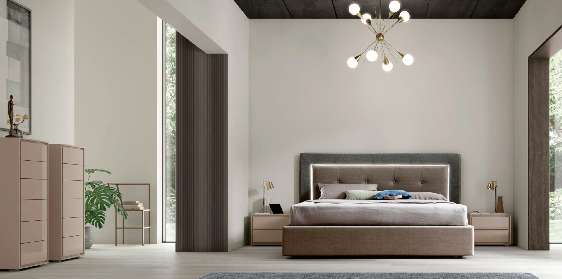 Il letto Deo in tessuto, tra i modelli con contenitore matrimoniali moderni di Maronese, è perfetto per garantirti il riposo migliore.