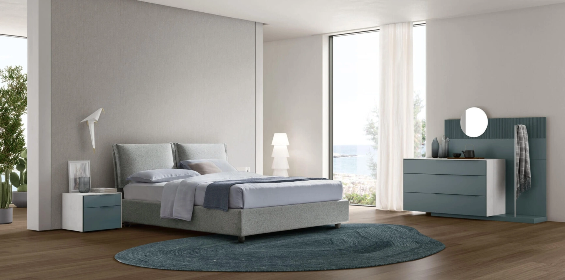 Il letto Lola in tessuto, tra i modelli con contenitore matrimoniali moderni di Maronese, è perfetto per assicurarti il relax totale.
