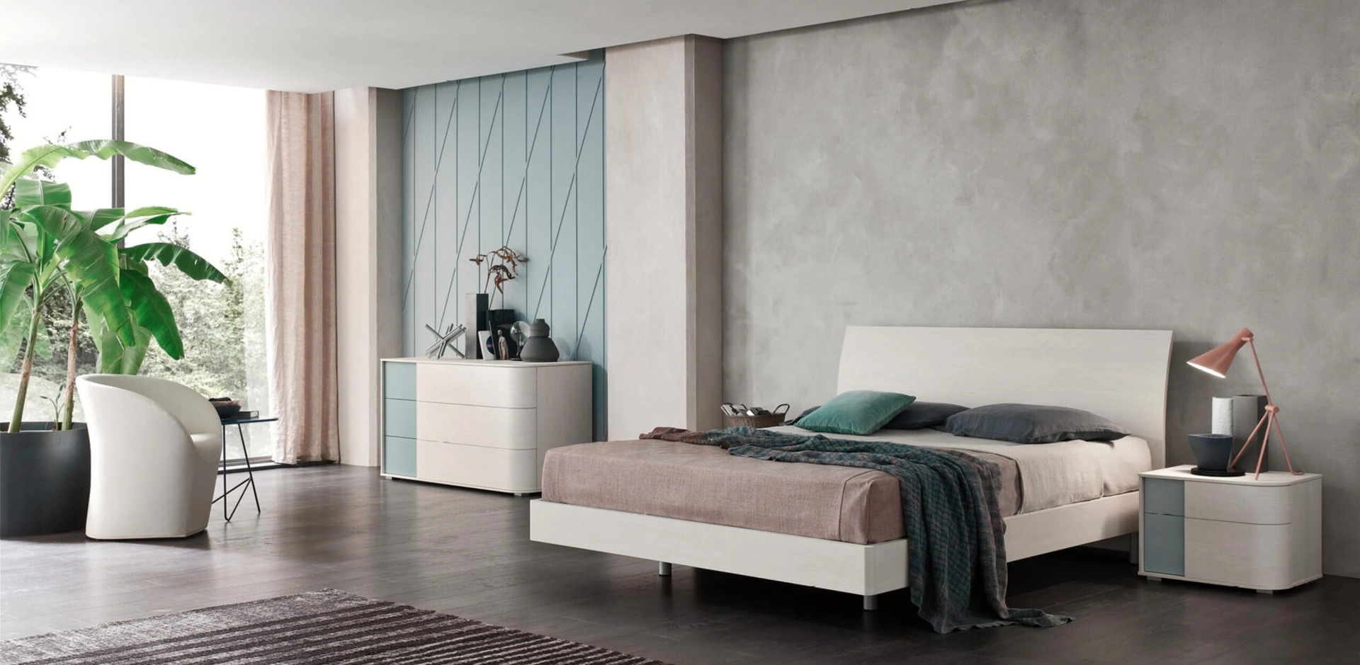 Se vuoi letti matrimoniali con contenitore, eccoti il modello Vela in melaminico per valorizzare la camera da letto.