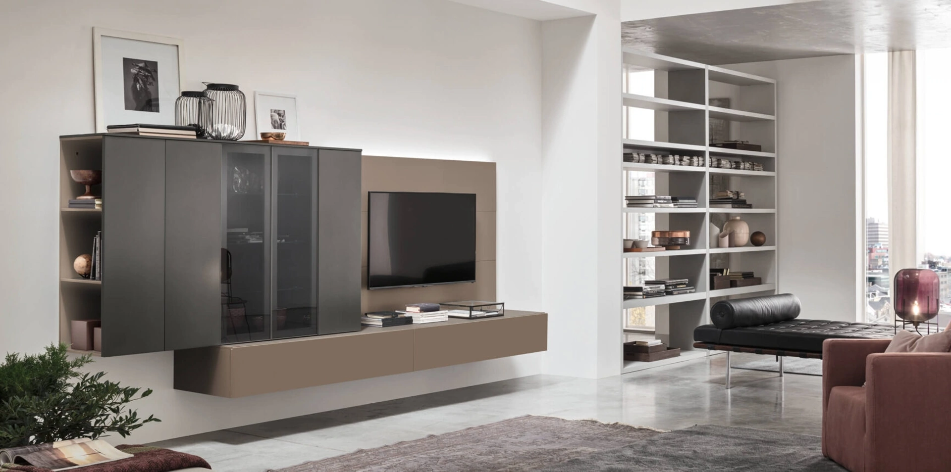 Anche in un soggiorno abbastanza piccolo, questo tipo di arredo riesce a organizzare al meglio gli spazi usufruendo al meglio di ogni angolo e garantendo massima componibilità tipica delle soluzioni moderne. Se cerchi arredi salvaspazio e realizzabili su misura per te, contattaci e ottieni informazioni sull'Arredamento Casa delle migliori marche. La Parete Attrezzata Unix Comp SU2113 di Maronese nell'immagine, con finitura in laccato opaco, risolve le più personali problematiche abitative di spazio e stile senza rinunciare alla ricerca estetica. Questo modello costituisce tutta l'eccellenza che il marchio assicura grazie a pluriennale esperienza e grande passione nel settore dell'arredo e del design.