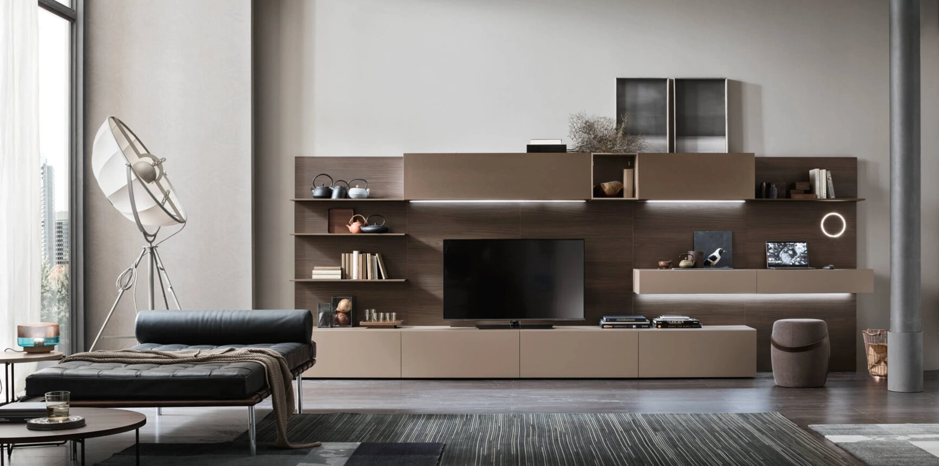 Vuoi arredare un living dinamico e operativo? Ti offriamo la parete attrezzata Unix Comp SU2115 Maronese dalle forme decise moderne.