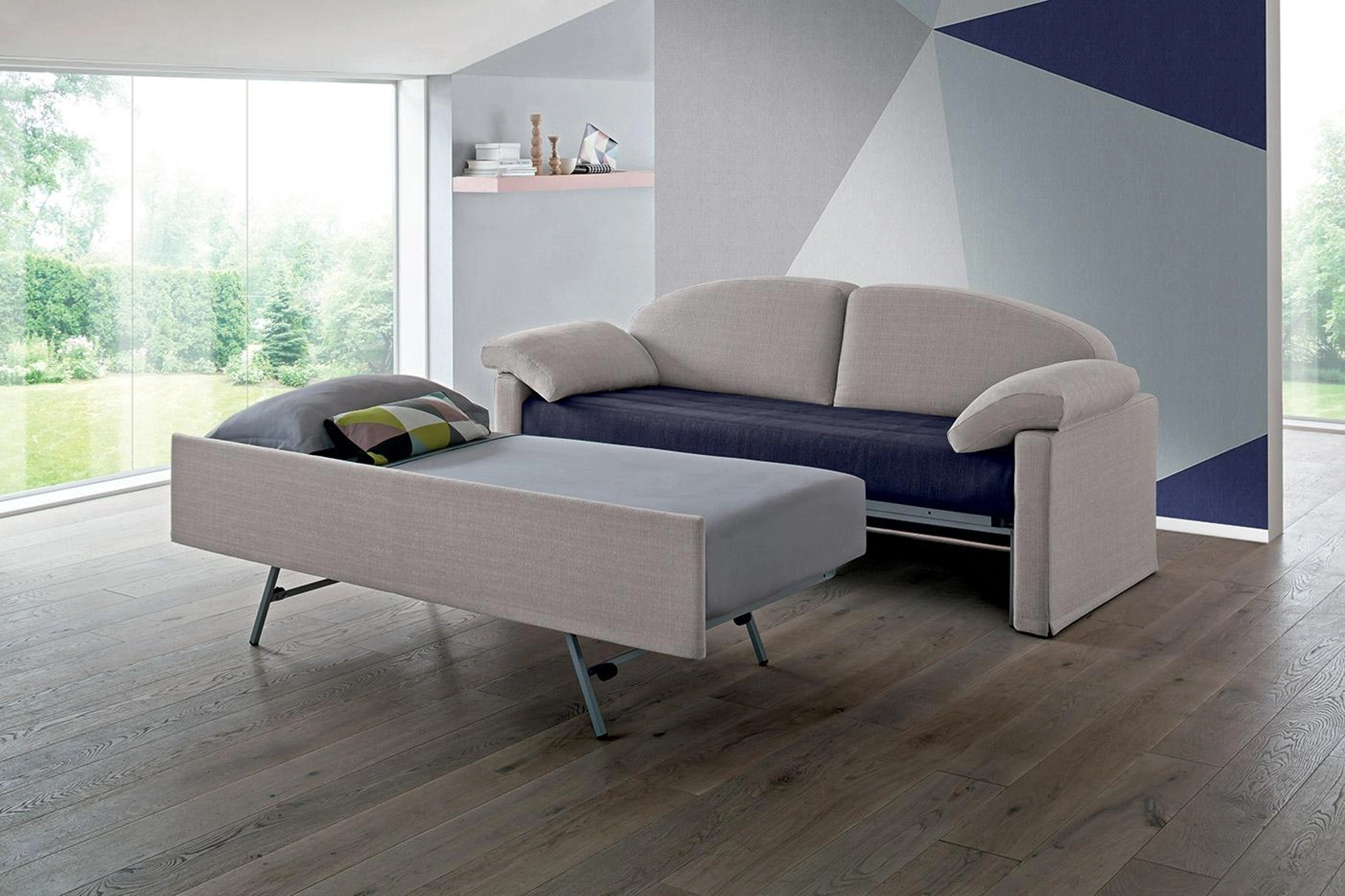 Salotti e divani con letto Felis: ti presentiamo il modello Klio in tessuto per completare la zona giorno.